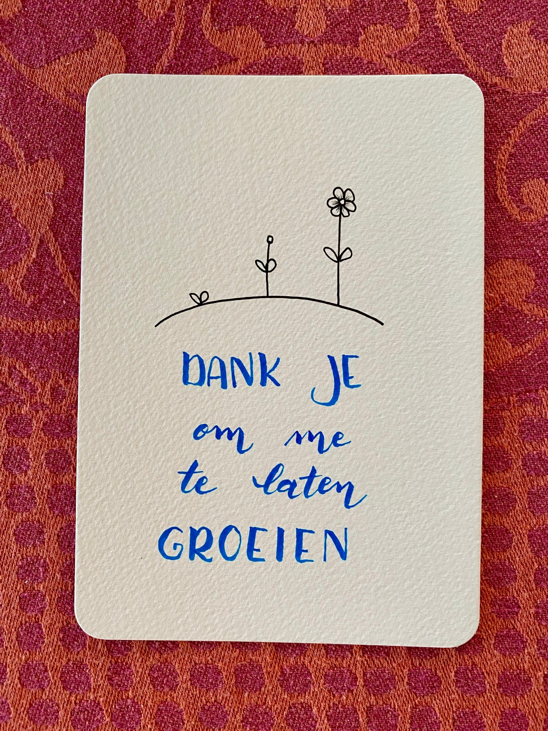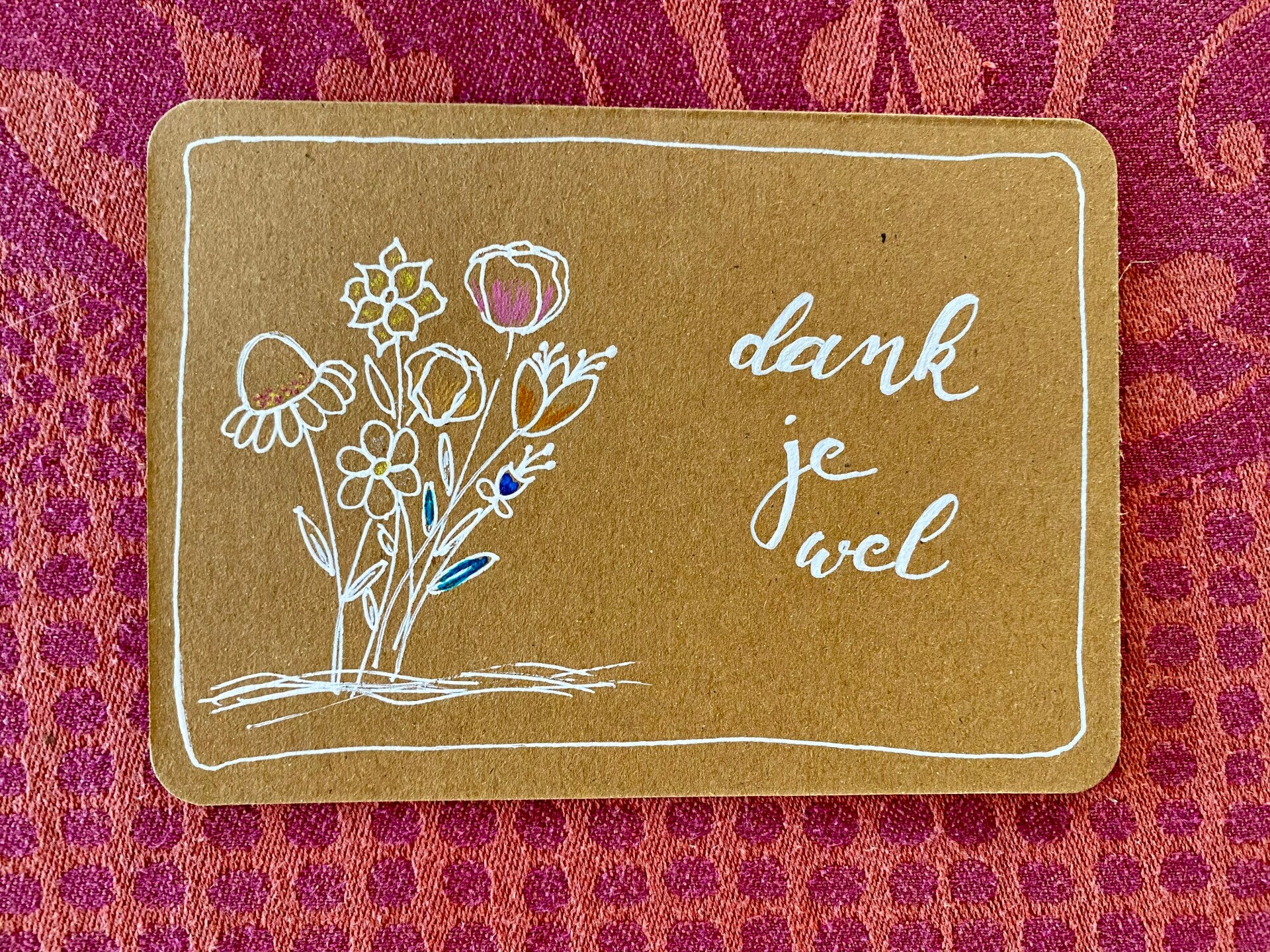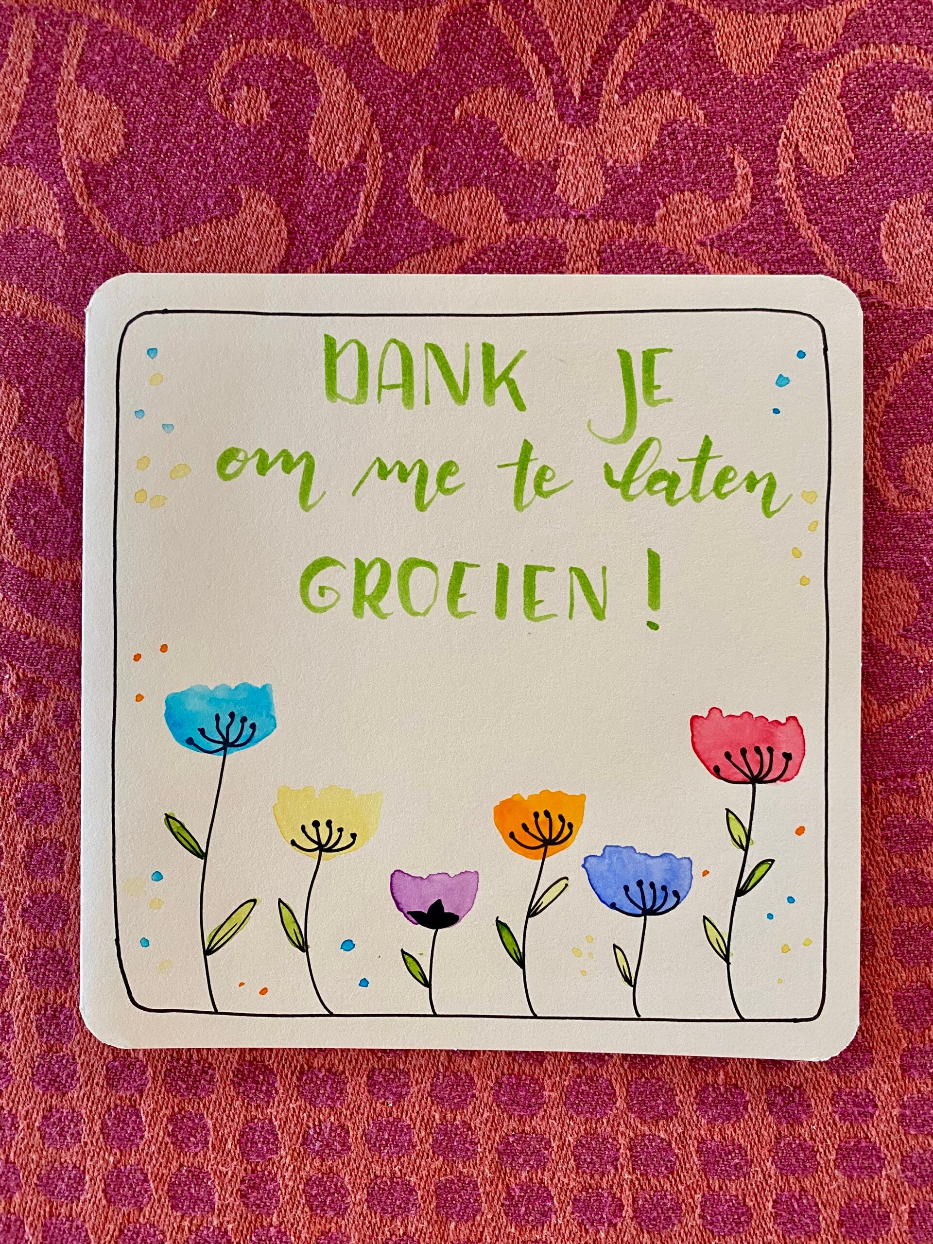Bedankingskaartje voor de juf of meester, al dan niet met de naam erbij.